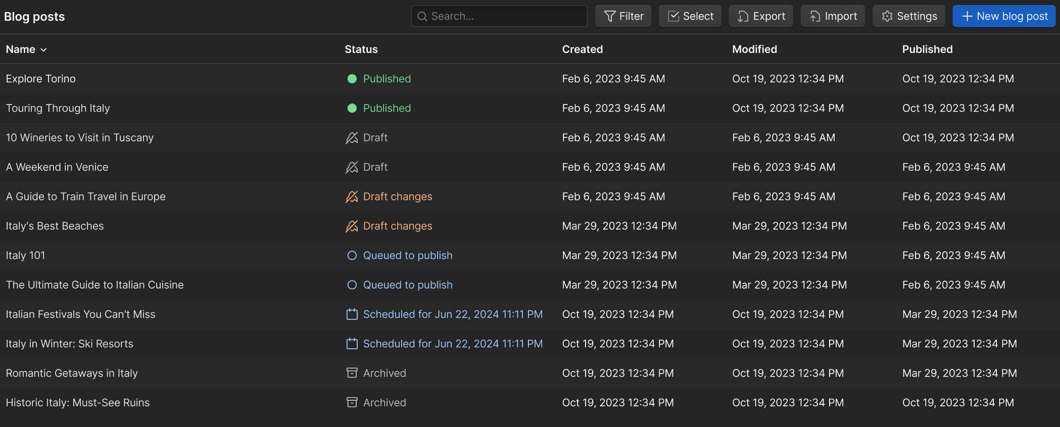 - Publishing and Unpublishing: You learned how to publish and unpublish items, and how the